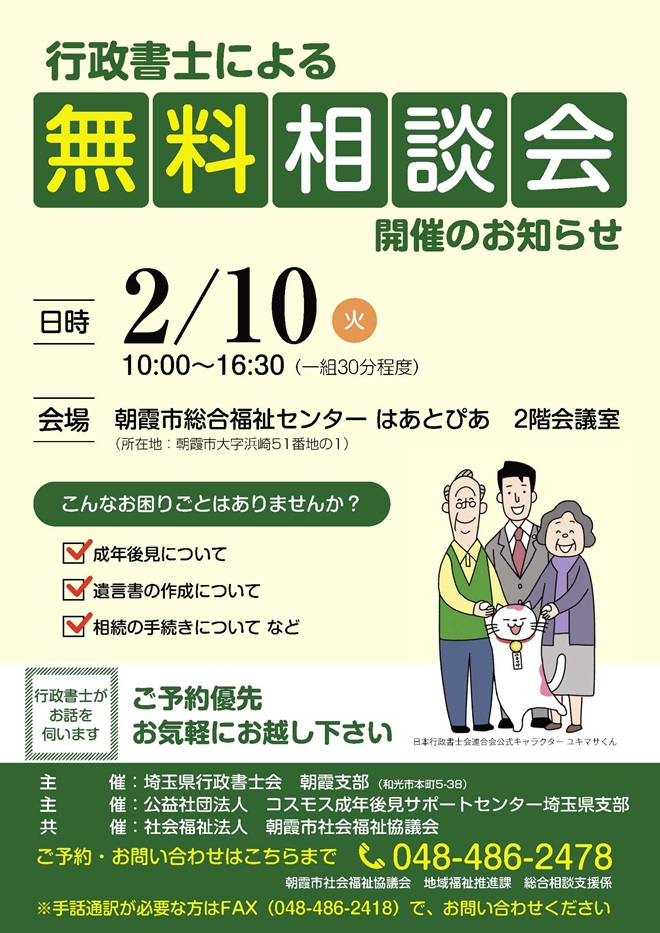 - 2026年02月01日 2月 行政書士による無料相談会(朝霞)